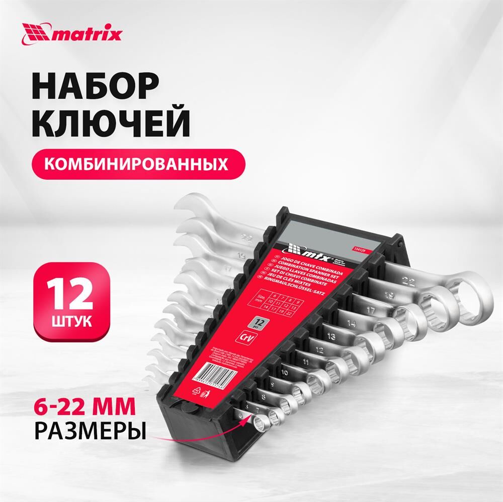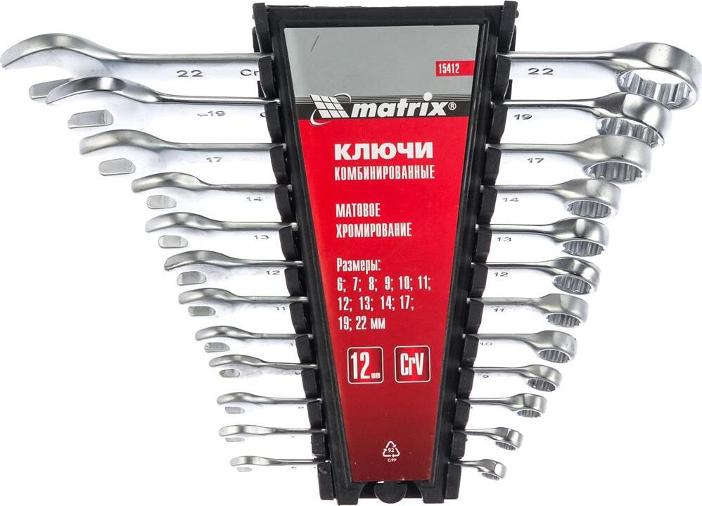 MATRIX Набор ключей комбинированных, 6-22 мм, 12 шт, CrV, матовый хром 15412