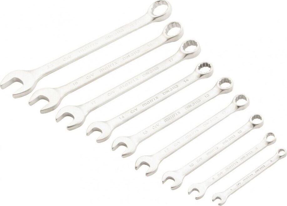 MATRIX Набор ключей комбинированных, 6-22 мм, 9 шт, CrV, матовый хром 15410
