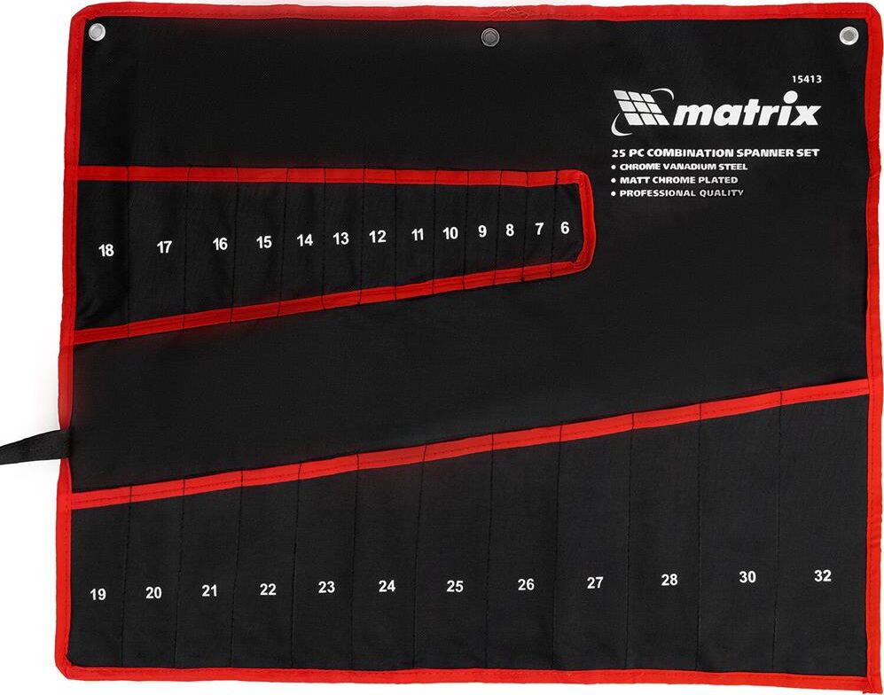 MATRIX Набор ключей комбинированных, 6-32 мм, 25 шт, CrV, матовый хром 15413
