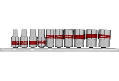 Набор из 10 торцевых головок размером 4-13 мм Matrix 13594 с присоединительным квадратом 1/4", с 12-гранным профилем, из стали CrV, предназначен для работы с небольшими резьбовыми соединениями. Насадки будут полезны автовладельцу, работнику автосервиса и домашнему мастеру.ПреимуществаУдобная работа в тесном пространстве — благодаря 12-гранному профилю головки требуется повернуть инструмент всего на 30° для перестановки.Высокий ресурс — насадки изготовлены из хромованадиевой стали, рабочие части закалены до твердости 42 HRC.Защита от разрушения — полированное хромоникелевое покрытие предотвращает образование коррозии.Быстрый поиск нужной торцевой головки — на корпусах насадок имеются красные полоски и маркировка с обозначением размера.Удобное хранение — благодаря металлической планке-держателю торцевые головки всегда будут под рукой и не потеряются.