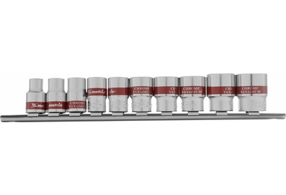 MATRIX Набор торцевых головок 3/8", 6 гранные, CrV, 8-19мм, 10 штук 13558