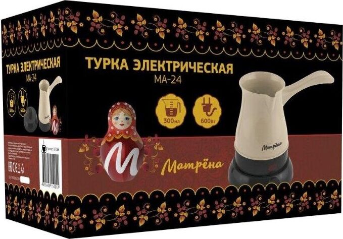Объем 300 мл. Ненагревающаяся ручка. Световой индикатор работы. Защита от перегрева при работе без воды. Корпус из термостойкого пластика. Закрытый нагревательный элемент из нержавеющей стали. Длина шнура 75 см. Мощность 600 Вт.