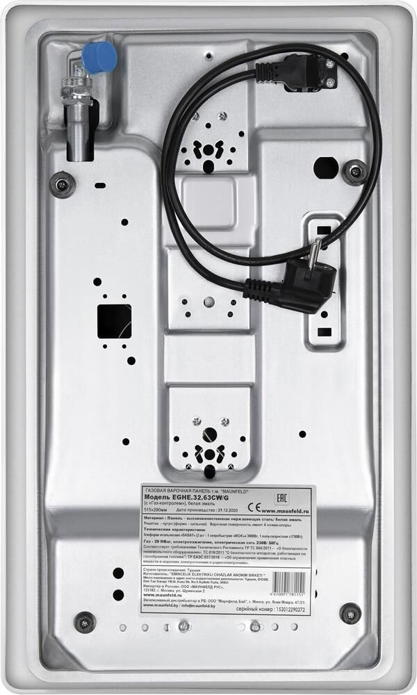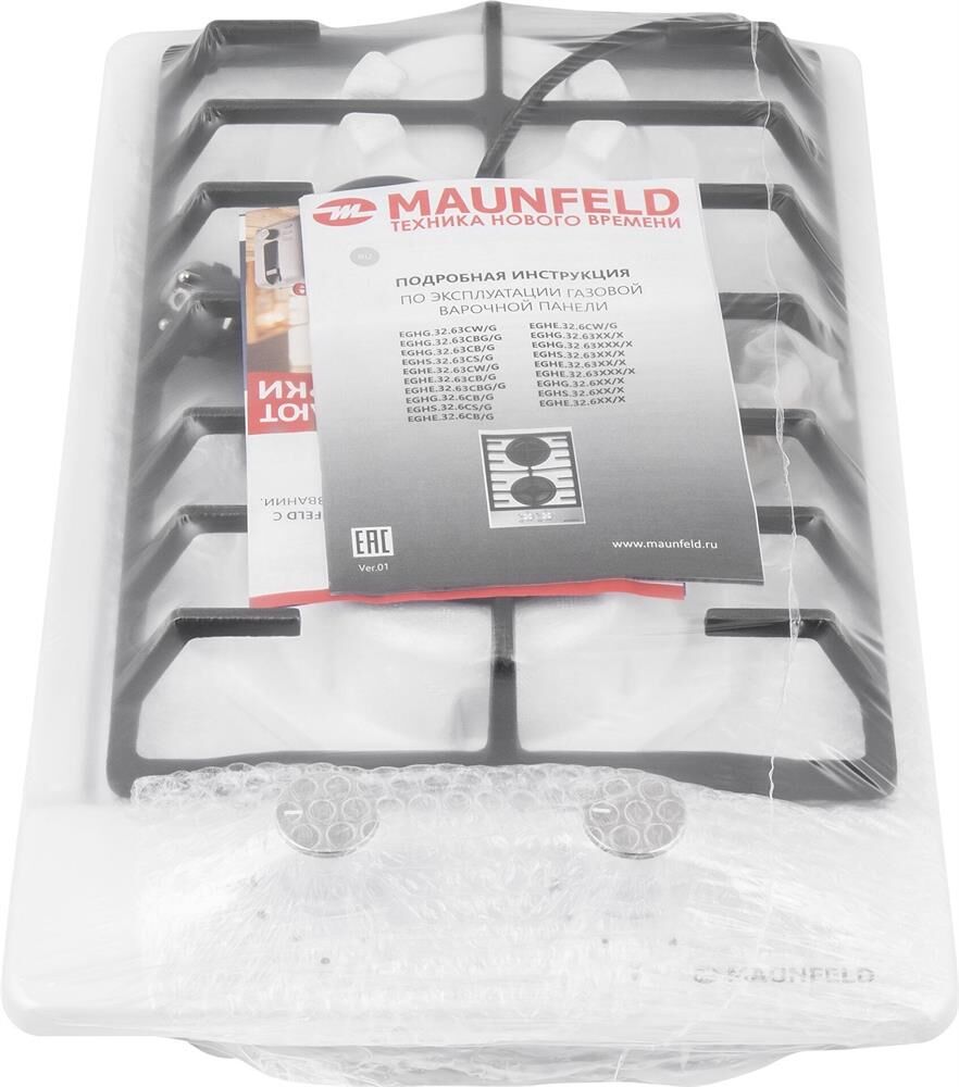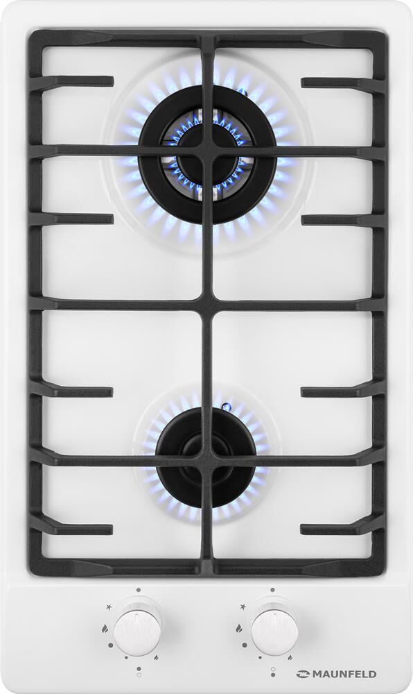 MAUNFELD Газовая варочная панель EGHE.32.63CW/G, 2 конфорки, эмалированная сталь, белый