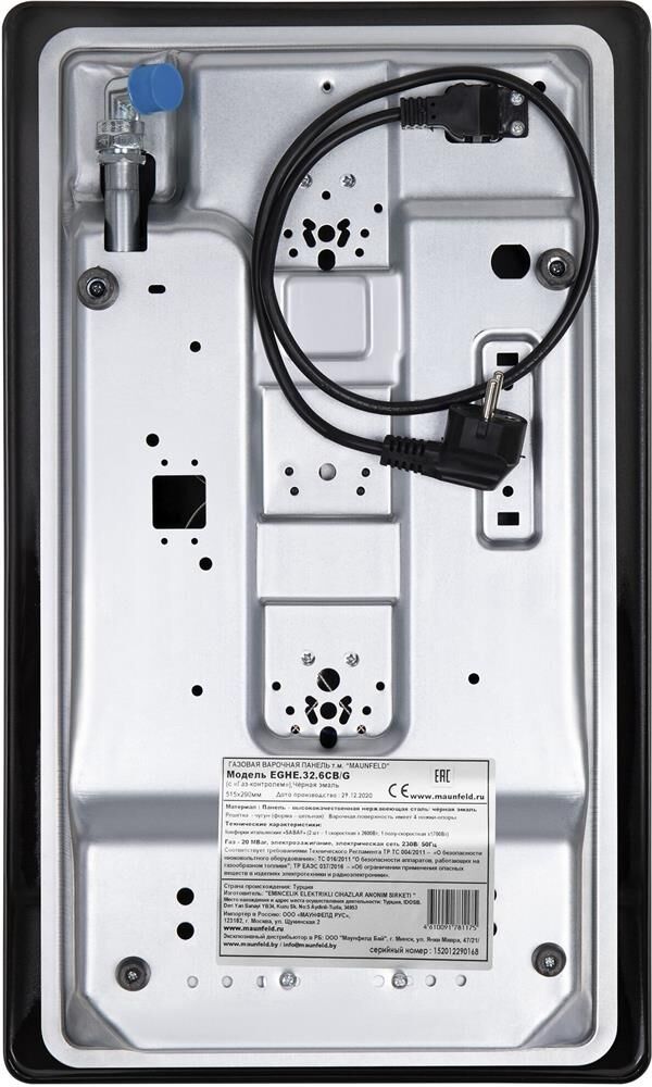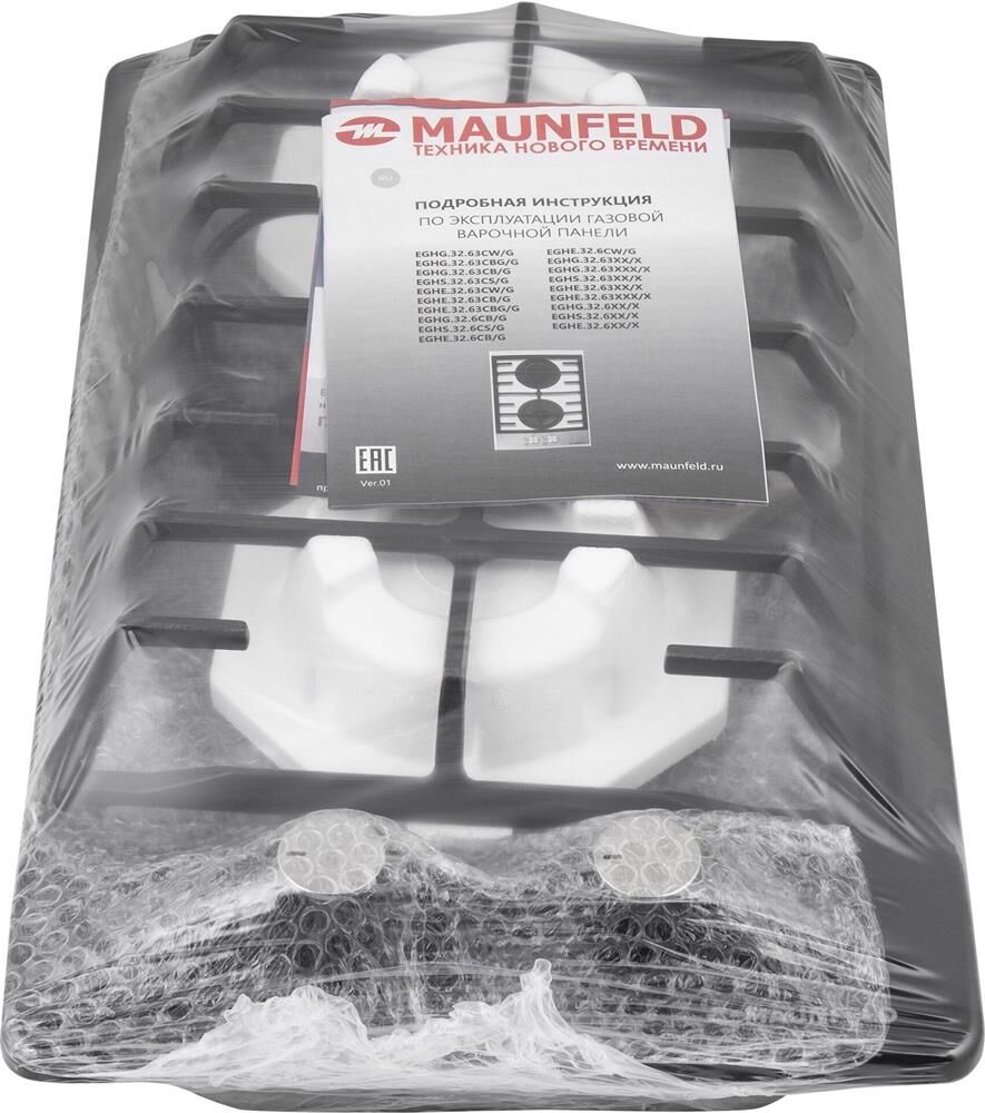 MAUNFELD Газовая варочная панель EGHE.32.6CB/G, 2 конфорки, эмалированная сталь, черный