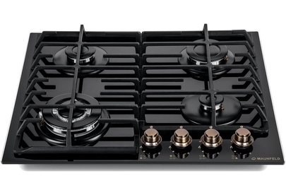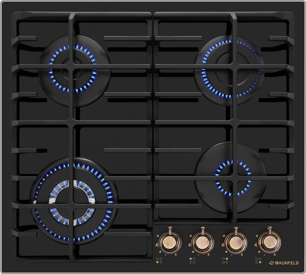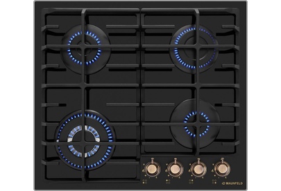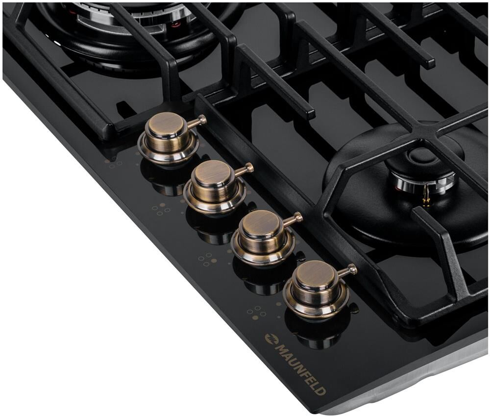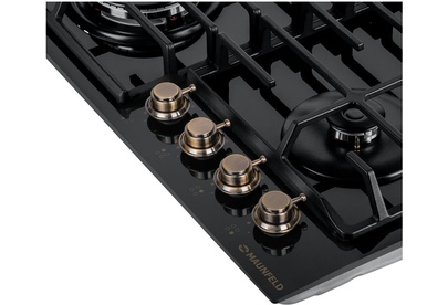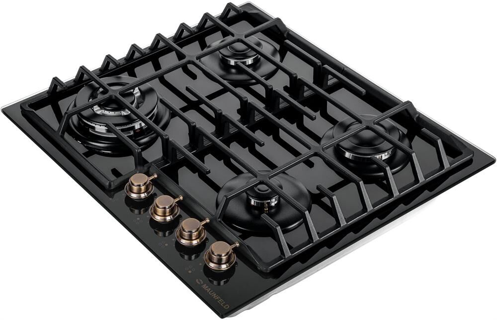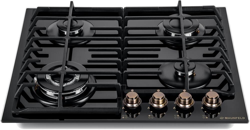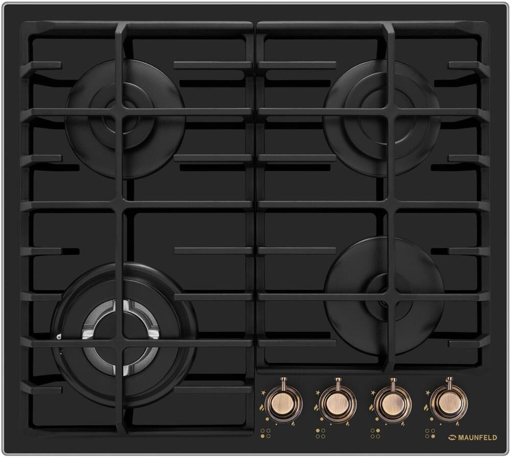 MAUNFELD Газовая варочная панель EGHG.64.63CB.R/G, 4 конфорки, закаленное стекло, черный