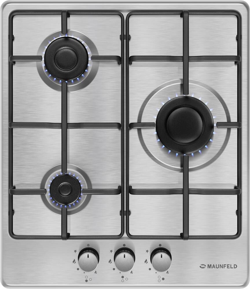 MAUNFELD Газовая варочная панель EGHS.43.3STS-ES, 3 конфорки, нержавеющая сталь, серебристый