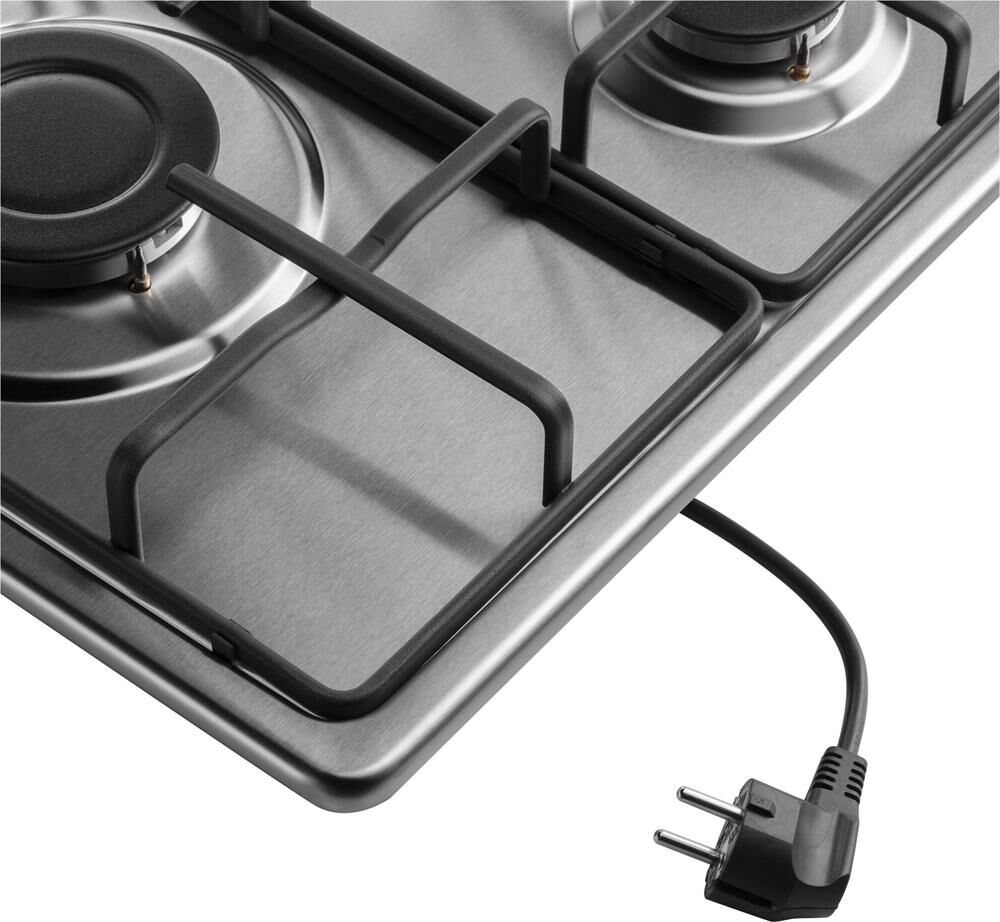 Тип панели: газовая. Установка рабочей поверхности: независимая. Материал поверхности: нержавеющая сталь. Материал решетки: эмалированная сталь. Суммарная мощность газовых конфорок: 5.3. Минимальная толщина столешницы: 30. Цвет: нержавеющая сталь. Особенности: Фронтальное управление происходит с помощью ручек управления из высокопрочного термостойкого пластика с хромированными накладками.. Вес (нетто): 5.87. Газ-контроль: есть. Габариты упаковки (ед) ДхШхВ: 0.56x0.525x0.12. Вес упаковки (ед): 6.87. Страна производства: Турция. Подключение к электросети: кабель с вилкой. Общее количество конфорок: 3. Управление: механическое. Электроподжиг: в ручке (автоматический). Гарантия: 36 мес.. Левая ближняя конфорка: газовая, мощность 1 кВт, одноконтурная. Левая дальняя конфорка: газовая, мощность 1.7 кВт, одноконтурная. Размеры (ШхГхВ): 440х510х51 мм. Размеры ниши для встраивания (ШхГхВ): 410х480. Правая ближняя конфорка: газовая, мощность 2.6 кВт, одноконтурная. Тип переключателей: поворотные. Материал поверхности: н