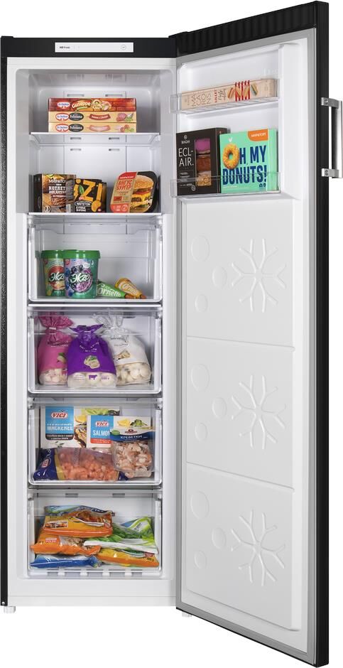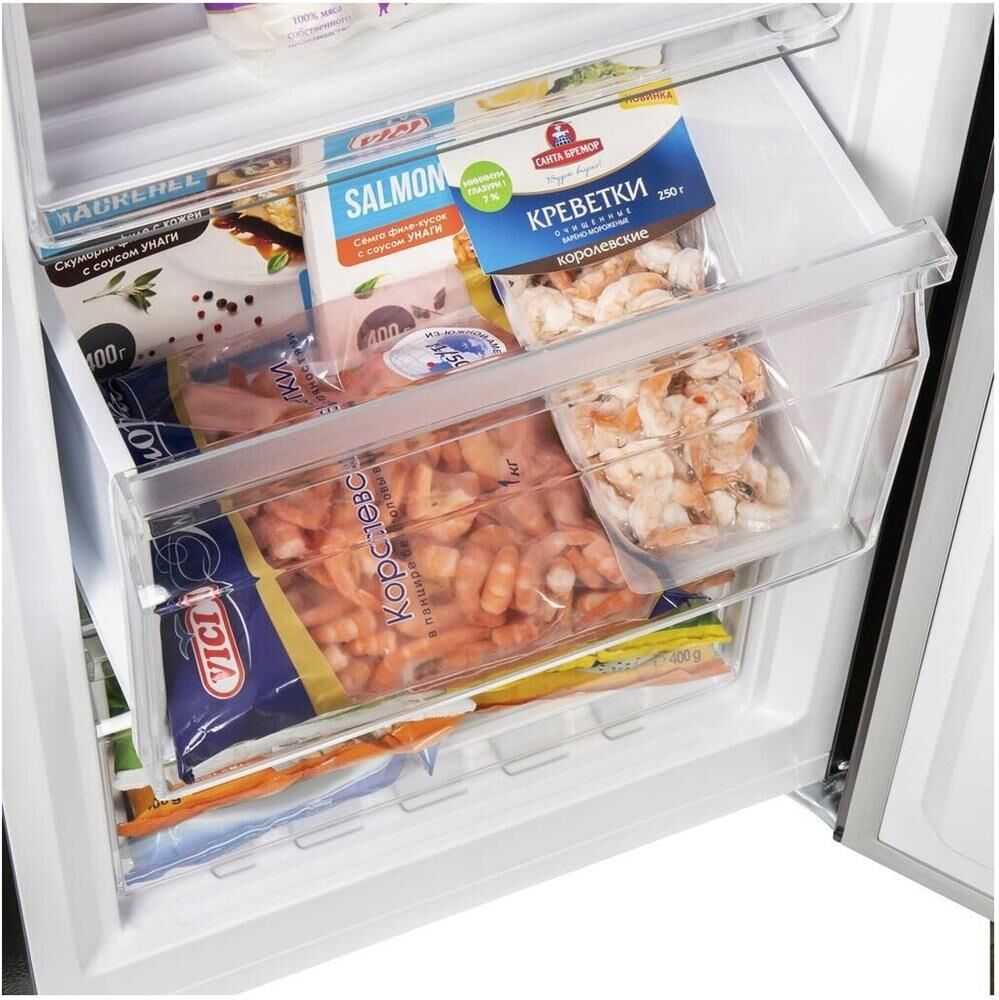 Класс энергопотребления: A+. Тип управления: электронное. Система размораживания: No Frost. Общий объем морозильной камеры: 206. Уровень шума: 43. Количество ящиков: 4. Мощность замораживания: 9.5. Перевешиваемые двери: есть. Потребление энергии: 310. Дисплей: есть. Количество компрессоров: 1. Хладагент: R600a. Полезный объем морозильной камеры: 206. Количество полок: 2. Регулируемые по высоте ножки: есть. Антибактериальное покрытие: есть. Вес (нетто): 52. Расположение дисплея: внутренний. Габариты упаковки (ед) ДхШхВ: 0.61x0.58x1.74. Вес упаковки (ед): 75.5. Количество дверей: 1. Количество камер: однокамерный. Материал дверей: металл. Материал полок: стекло. Технология автоматического размораживания морозильной камеры: No Frost. Максимальная температура: -16. Минимальная температура: -24. Гарантия: 12 мес.. Размеры (ШхВхГ): 54 х 170 х 59 см. Цвет: черный. Функции: суперзаморозка. Индикация: открытой двери, температуры. Климатический класс: N, SN, ST. Объем: 206 л. Размеры (ШxВxГ): 54 х 170 х 59 см. Температ