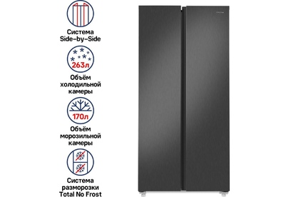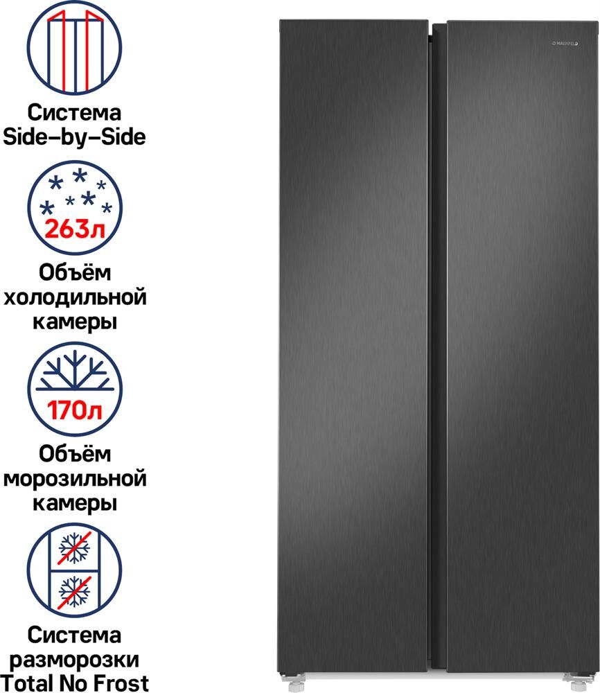 MAUNFELD Холодильник двухкамерный MFF177NFSE Total No Frost, Side by Side, инверторный нержавеющая с