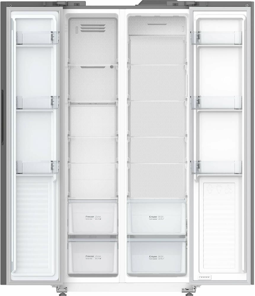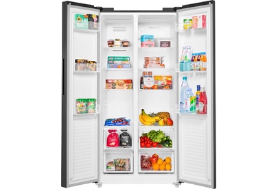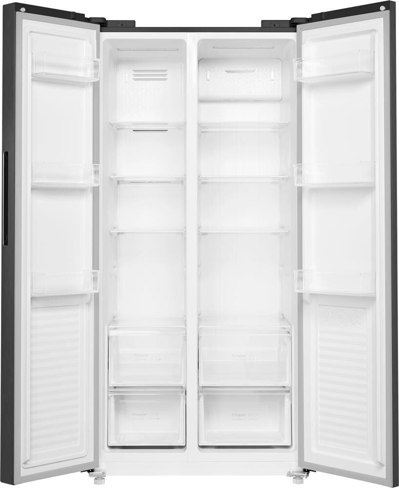 Количество камер: двухкамерный. Расположение морозильной камеры: сбоку. Тип управления: электронное. Класс энергопотребления: A+. Система размораживания: No Frost. Общий объем холодильника: 433. Общий объем холодильной камеры: 263. Общий объем морозильной камеры: 170. Уровень шума: 41. Мощность замораживания: 8. Количество полок: 4. Количество ящиков: 2. Материал полок: стекло. Антибактериальное покрытие: есть. Количество полок: 4. Система размораживания: No Frost. Тип: Холодильник. Полезный объем холодильника: 430. Хладагент: R600a. Количество ящиков: 2. Вес (нетто): 74. Количество дверей: 2. Тип компрессора: инверторный. Габариты упаковки (ед) ДхШхВ: 0.9x0.7x1.831. Вес упаковки (ед): 105. Страна производства: Китай. Инверторный компрессор: есть. Количество полок на дверце: 6. Материал дверей: металл. Наличие морозильной камеры: есть. Технология автоматического размораживания морозильной камеры: Total No Frost. Технология автоматического размораживания холодильной камеры: Total No Frost. Тип дисплея: внутрен