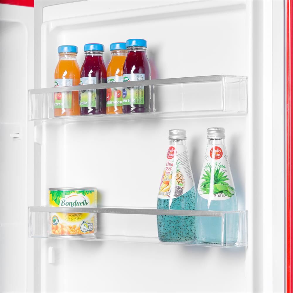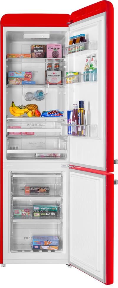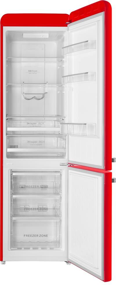 Количество камер: двухкамерный. Расположение морозильной камеры: снизу. Тип управления: электронное. Класс энергопотребления: A+. Система размораживания: No Frost. Общий объем холодильника: 252. Общий объем холодильной камеры: 181. Общий объем морозильной камеры: 71. Уровень шума: 45. Количество компрессоров: один. Мощность замораживания: 3.5. Количество полок: 3. Количество ящиков: 3. Материал полок: закаленное стекло. Антибактериальное покрытие: есть. Система размораживания: No Frost. Тип: Холодильник. Полезный объем холодильника: 250. Хладагент: R600a. Количество ящиков: 2. Вес (нетто): 59. Количество дверей: 2. Тип компрессора: стандартный. Габариты упаковки (ед) ДхШхВ: 0.7x0.585x1.9. Вес упаковки (ед): 66. Страна производства: Китай. Количество полок на дверце: 3. Материал дверей: металл. Наличие морозильной камеры: есть. Направление открывания двери: вправо. Гарантия: 12 мес.. Цвет: красный. Потребление энергии: 255 кВт*ч/год. Размеры (ШхВхГ): 54 х 186.5 х 60 см. Особенности конструкции: регулируемые по