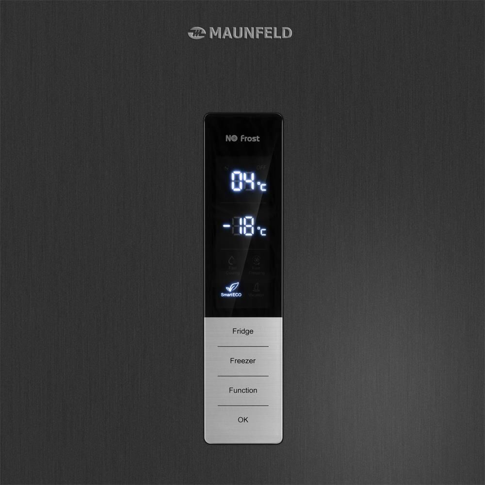 MAUNFELD Холодильник двухкамерный MFF200NFSBE Total No Frost, черная сталь