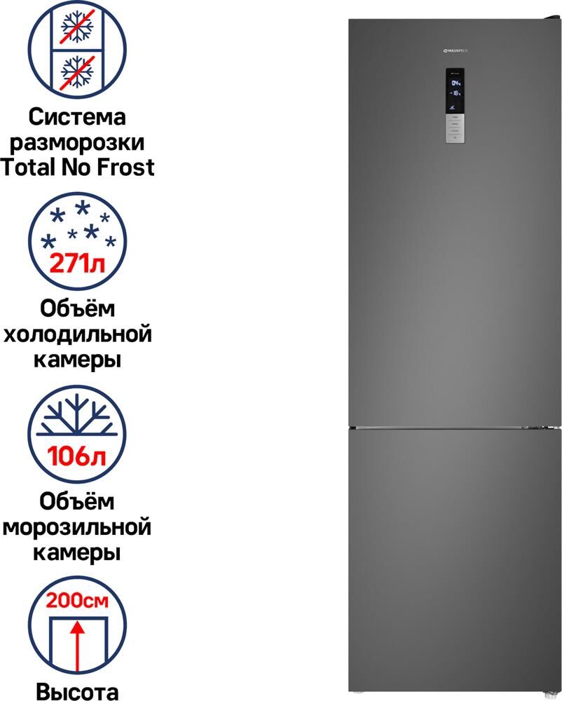 MAUNFELD Холодильник двухкамерный MFF200NFSE Total No Frost, нержавеющая сталь