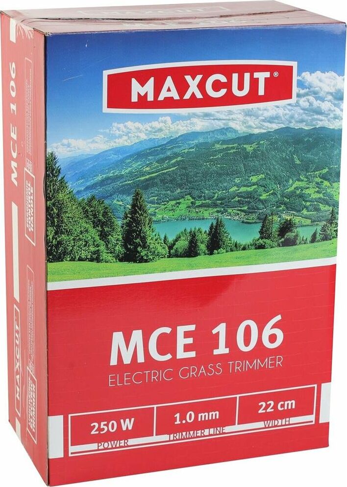Мощность 360Вт, Напряжение 220-230В, 50Гц, Диаметр лески 2.0-2.4мм, Захват 22см, Вес 1.2кг. Представляем вашему вниманию новинку от производителя Maxcut – электротриммер модели MCE 106. С покупкой триммера борьба с лишней растительностью больше не будет сложной задачей, отнимающей много времени и сил. Данная модель представляет собой очень тихий и легкий инструмент, который станет отличным помощником для дачников и садоводов.Он настолько прост и легок в эксплуатации, что с ним могут работать как пожилые люди, так и женщины. Электрический триммер отличается эргономичным исполнением, хорошим балансом и очень удачным сочетанием качества и цены.
