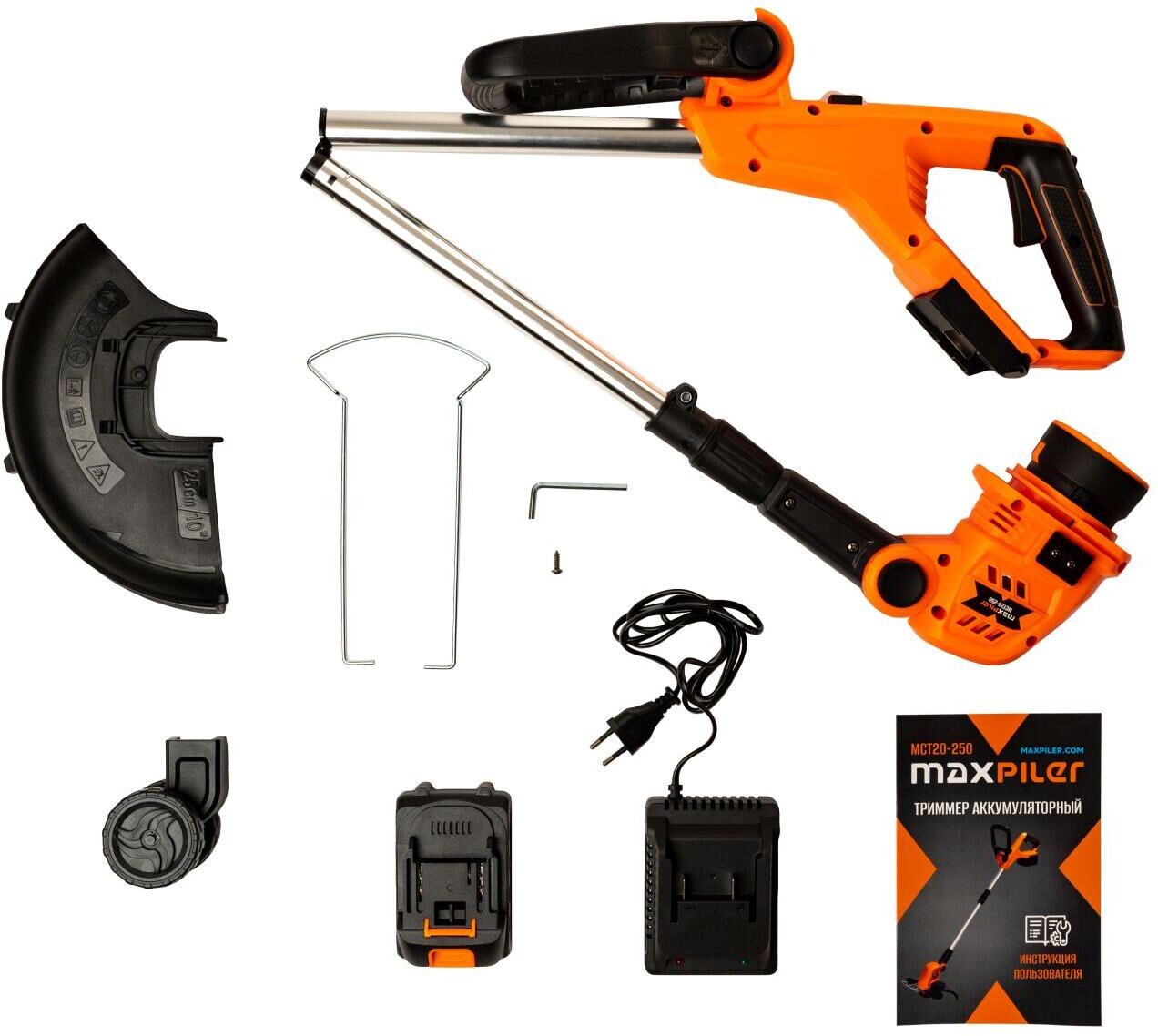 MAXPILER Триммер аккум. MCT20-250 (20В, Ø250 мм, телескопическая, леска 1,2мм, 1 АКБ 2Ач, ЗУ)