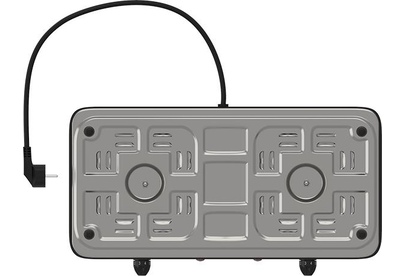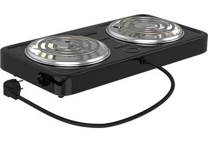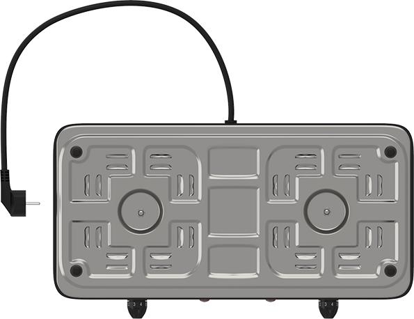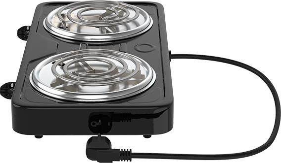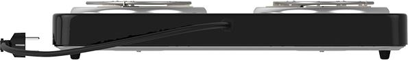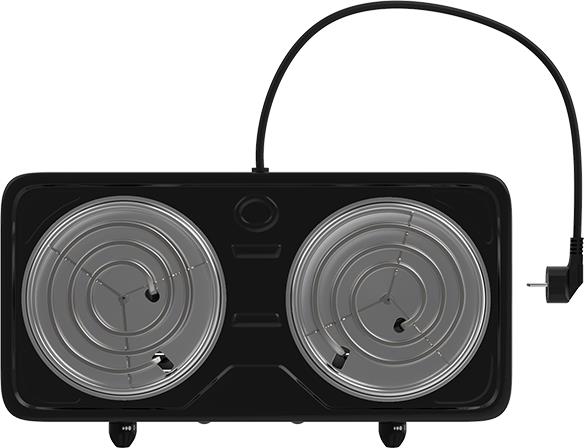 Мощность 2000 Вт, две стальные конфорки 14 см, 5 режимов регулировки температуры, индикатор включения, защита от перегрева.