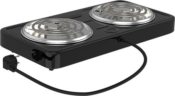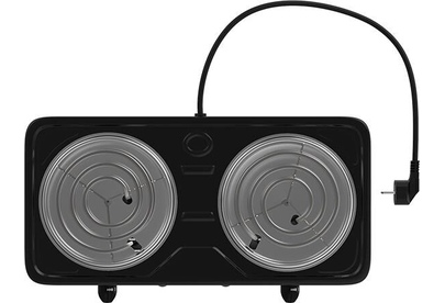 Мощность 2000 Вт, две стальные конфорки 14 см, 5 режимов регулировки температуры, индикатор включения, защита от перегрева.