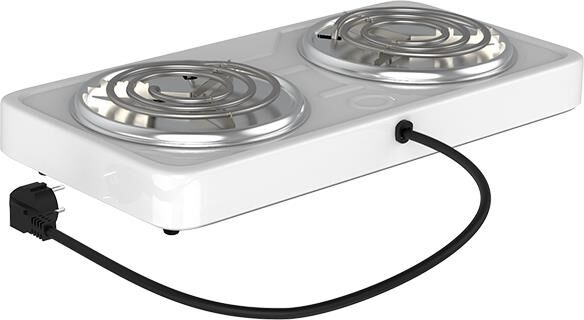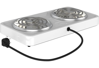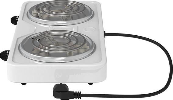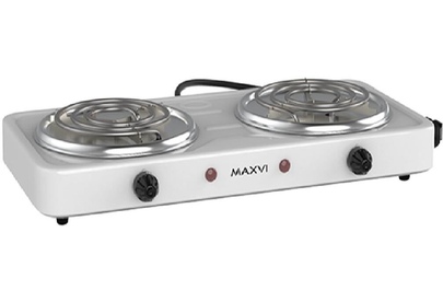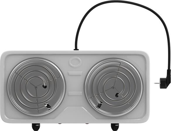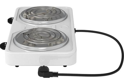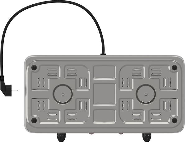 Мощность 2000 Вт, две стальные конфорки 14 см, 5 режимов регулировки температуры, индикатор включения, защита от перегрева.
