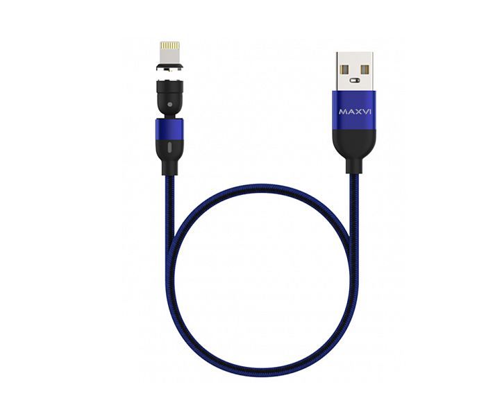 MAXVI MCm-02L синий , USB-A - Lightning, 2A, магнитный разъем, LED