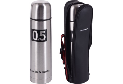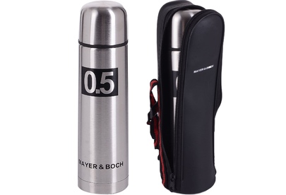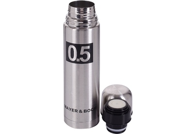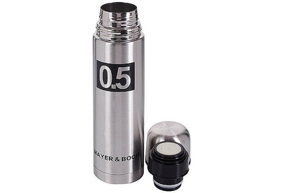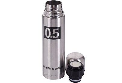Термос МВ (х24). Корпус: нержавеющая сталь. Внутренний резервуар: нержавеющая сталь. Крышка: полипропилен. Объем: 500 мл. Размер упаковки: 7,5 х 7,5 х 26 см. Упаковка: коробка. Вес: 330 г. Страна-изготовитель: Китай.