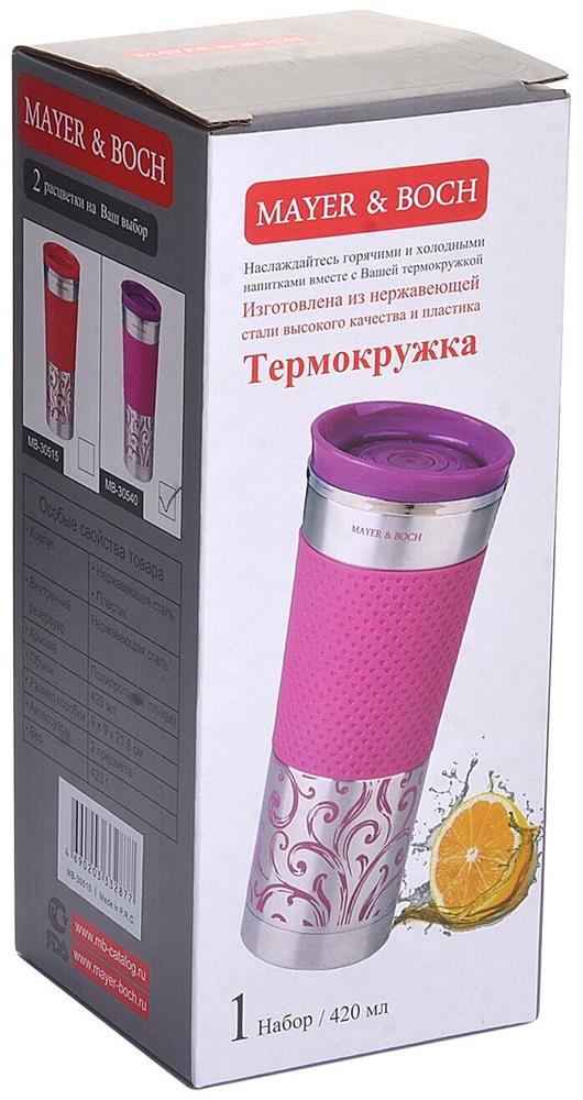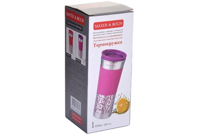 Термокружка MAYER & BOCH изготовлена из нержавеющей стали, не содержащей токсичных веществ. Двойные стенки дольше сохраняют напиток горячим и не обжигают руки. Надежная закручивающаяся крышка с защитой от проливания обеспечит дополнительную безопасность. Крышка оснащена клапаном для питья. Оптимальный объем позволит взять с собой большую порцию горячего кофе или чая. Идеально подходит для холодных напитков. Такая кружка может быть использована во время отдыха, на работе, в путешествии, во время поездок в автомобиле.