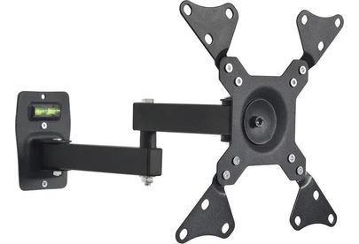 Консольный стальной кронштейн с наклоном и поворотом 5 степеней вободы: Наклон: +/-15°, Поворот: 360°,Вращение: +/-3°, Смещение в 2х плоскостях, Расстояние от стены: 50-360 мм VESA 75x75 - 200x200 до 30 кг.