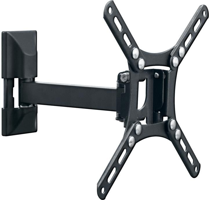Консольный стальной кронштейн с наклоном и поворотом. Диагональ до 43". VESA 75x75-200x200. Нагрузка до 25кг. 3 степени свободы: Наклон: +5°/-15°, Поворот: 180° и смещение Расстояние от стены 50 - 230 мм