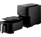 Мощность: 2100 Вт (1050 Вт+ 1050 Вт) Объем 9 л ( 4,5 л + 4,5 л) Два независимых нагревательных элемента Чаши с антипригарным покрытием Сенсорная панель управления 8 автоматических программ приготовления Регулятор температуры 80-200?С Таймер на 60 мин Автоотключение Съемная решетка Ненагревающаяся ручка Циркуляция воздуха 360?С Функция SyncPro - позволит получить готовые блюда к одному и тому же времени Книга рецептов в подарок Гарантия 2 года