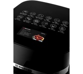 Мощность 1450-1750 Вт. Ёмкость поддонов 9 л (2 х 4,5 л). Количество программ приготовления 12. Температура 50-200°С с шагом 10°С. Таймер 1-60 мин с шагом 1 мин. Уровень шума до 50 дБ. Управление сенсорное. Длина шнура 1 м. Размер устройства 404 х 371 х 328 мм.