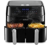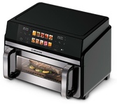 Аэрогриль вертикальный с 2-мя чашами, электронное управление, объем чаш 6 литров + 6 литров, мощность 3400 ватт, таймер, 12 автопрограмм, светодиодный сенсорный складной дисплей, смотровое окно, температура: от 60 до 200 градусов, одновременное приготовление разных блюд