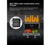 Объем чаши: 7. Количество программ/режимов: 8. Тип управления: сенсорное. Тип нагревательного элемента: ТЭН. Установка времени приготовления: есть. Антипригарное покрытие нагревательных частей: есть. Съемные формы: есть. Режимы/программы приготовления: грибы; куриные крылышки с распылением масла; картофель фри; овощи; стейк; куриные крылышки с рапсылением воды; тарт; рыба. Регулировка времени приготовления: плавная. Установка температуры приготовления: есть. Регулировка температуры приготовления: многоступенчатая, с шагом в 5 C. Информационный дисплей: есть. Возможность залива воды: есть. Индикатор включения: есть. Индикатор нагрева: есть. Звуковой сигнал: есть. Автоматическое отключение (защитное): есть. Ненагревающаяся ручка: есть. Вес товара: 6.4. Материал чаши: алюминий. Длина электрокабеля: 0.7. Габариты упаковки (ед) ДхШхВ: 0.383x0.365x0.38. Вес упаковки (ед): 7.8. Страна производства: Китай. Гарантия: 12 мес.. Цвет: черный. Особенности: Оснащён двойным резервуаром для воды и масла. Материал корпуса: пл