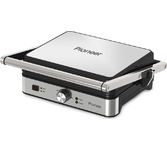 Максимальная мощность, Вт.: верхний нагрев 1000 Вт; нижний нагрев 1000 Вт Количество автоматических программ: 6 Ручной режим работы: есть Регулировка температуры: есть Регулировка времени: есть Варианты использования гриля: открытый/закрытый Съемные нагревательные панели: есть Покрытие нагревательных панелей: антипригарное Размер панелей, мм.: 320x220 Независимый нагрев панелей: есть Панели можно мыть в посудомоечной машине: да Съемный поддон для сбора жира: есть Функция размораживания: есть Индикаторы: индикатор цвета для напоминания о процессе приготовления Дисплей: есть, LED Комплектация: электрический гриль, двухсторонние панели с гладкой и гриль стороной, панель для венских и бельгийских вафель, термощуп для измерения температуры внутри продукта, гарантийный талон, инструкция на русском Материал корпуса: нержавеющая сталь Цвет: серебристый Электропитание, в., Гц.: 220-240, 50