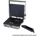 Количество программ/режимов: 1. Тип управления: механическое. Тип нагревательного элемента: ТЭН. Ширина рабочей поверхности: 23.5. Длина рабочей поверхности: 29.5. Антипригарное покрытие нагревательных частей: есть. Антипригарное покрытие: керамическое. Формы для готовки: для контактного гриля. Установка температуры приготовления: есть. Регулировка температуры приготовления: плавная. Лоток для сбора жира: есть. Индикатор включения: есть. Индикатор нагрева: есть. Автоматическое отключение (защитное): есть. Ненагревающаяся ручка: есть. Вес товара: 2.6. Раскрытие на 180 градусов: есть. Принадлежности в комплекте: Поддон для сбора жира.. Длина электрокабеля: 0.8. Габариты упаковки (ед) ДхШхВ: 0.37x0.15x0.365. Вес упаковки (ед): 3.57. Страна производства: Китай. Гарантия: 12 мес.. Цвет: серебристый и черный. Особенности: Устойчивое к царапинам керамическое покрытие пластин и глубокими канавками.. Материал корпуса: нержавеющая сталь. Размеры (ШхВхГ): 35.6 х 14.5 х 33.6см. Мощность: 2000 Вт. Особенности: раскрытие н