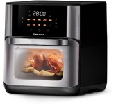 Мощность 1800 Вт Объем 12 л 10 программ: фри, мясо, рыба, морепродукты, пицца, голень, кекс, курица, сушка, подогрев Корпус из высокопрочного термостойкого пластика Функция подогрева пищи Сенсорное управление LED-дисплей Регулировка температуры 80–200 °С Таймер до 60 мин Аксессуары: -вертел -аэрофритюрница -поддон -поддон для барбекю -ручка для извлечения -решетка -шашлычница Звуковой сигнал готовности блюда Электропитание 220-240 В, ~ 50-60 Г