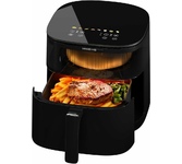 Объем чаши: 6. Количество программ/режимов: 10. Тип управления: сенсорное. Тип нагревательного элемента: ТЭН. Установка времени приготовления: есть. Антипригарное покрытие нагревательных частей: есть. Съемные формы: есть. Список режимов/программ приготовления: картофель фри;мясо;курица;рыба;морепродукты;овощи;бекон;сушка;замороженная пицца;пицца. Регулировка времени приготовления: плавная. Установка температуры приготовления: есть. Регулировка температуры приготовления: многоступенчатая, с шагом в 5 C. Информационный дисплей: есть. Индикатор включения: есть. Индикатор нагрева: есть. Звуковой сигнал: есть. Автоматическое отключение (защитное): есть. Вес товара: 7.1. Материал чаши: алюминий. Длина электрокабеля: 0.8. Страна производства: Китай. Гарантия: 12 мес.. Цвет: белый и черный. Материал корпуса: пластик/металл. Размеры (ШхВхГ): 37.7 х 21 х 37.7см. Мощность: 2850 Вт. Температура: 40 - 230 °С. Мощность: 2850 Вт. Количество программ/режимов: 10. Управление: сенсорное. Нагревательный элемент: ТЭН. Температур