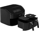 Комплексная защита элементов M-Pro - защита от перегрева при длительной работе. 17 автоматических программ - разнообразное меню: курица, ребрышки, батат, картофель фри, овощи, выпечка, стейк из говядины, шашлык, ручной режим, разогрев, разморозка, сухофрукты, тосты, омлет, печенье, рыба, морепродукты. Таймер до 12 часов (при настройке в ручном режиме) - автоматически отключается по истечении времени. Функция пауза - прибор автоматически встает на паузу при вынимании чаши или при нажатии клавиши "пауза". Звуковая индикация о переворачивании продукта - работает в программах курица, овощи, ребрышки, шашлык, батат, картофель фри. Разделитель чаши " Hybrid bowl"- одновременное приготовление 2 блюд. Вместительная чаша объемом 5,5 л прямоугольной формы - большая чаша рассчитана для приготовления продуктов целиком, например: запечь рыбу целиком, шашлык на шпажках, свиные ребра (не разрезая).