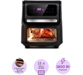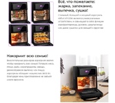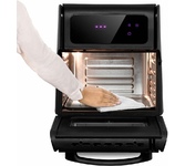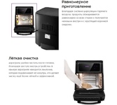 Экран ЖК-дисплей Тип управления Сенсорное Объем 6 л программы 11 предустановленных программ: Курица, Рыба, Морепродукты, Стейки, Колбаски, Овощи, Картофель, Пицца, Выпечка, Картофель фри, Тост Температура 80-200°C Нагревательный элемент Верхний и нижний Высокоскоростная циркуляция воздуха на 360° Да Подача пара Да Антипригарное покрытие корзины Да Внутренняя подсветка Да, можно использовать опционально Панель управления Сенсорная (цветные пиктограммы) Контейнер для воды для подачи пара Да, 140 мл Смотровое окно Да Простота очистки Да Можно мыть в посудомоечной машине Противень для приготовления можно мыть в посудомоечной машине. Цвет черный Габариты внутреннего пространства (Ш х В х Г) 26,7 x 35,7 x 35,5 см Вес 5,4 кг