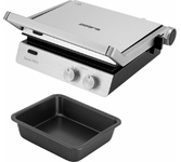 Автоматическое отключение (защитное): есть. Антипригарное покрытие нагревательных частей: ДА. Вес товара: 4.8. Вес упаковки (ед): 5.92. Габариты упаковки (ед) ДхШхВ: 0.42x0.2x0.42. Длина рабочей поверхности: 24.4. Длина электрокабеля: 0.9. Звуковой сигнал: есть. Индикатор включения: есть. Индикатор нагрева: есть. Информационный дисплей: есть. Количество программ/режимов: 7. Лоток для сбора жира: есть. Раскрытие на 180 градусов: есть. Съемные формы: есть. Тип управления: механическое. Ширина рабочей поверхности: 31.3. Гарантия: 12 мес.. Мощность: -2100 Вт. Температура: 0-230 °С. Материал корпуса: нержавеющая сталь/пластик. Размеры (ШхВхГ): 37.7х16х32.7 см. Цвет: серый. Особенности: раскрытие на 180 градусов, лоток для сбора жира