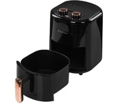 Аэрогриль, 1200 Вт, чаша с антипригарным покрытием 4 л, таймер на 30 минут, регулировка температуры 80-200С, механическое управление, съемная решетка чаши, защита от перегрева, чашу можно мыть в посудомоечной машине. Подходит для всех блюд, которые готовятся в духовке, готовит без масла или с минимальным его использованием. Цвет черный. Длина шнура 90см. Размеры: 32*22,5*28,5см.
