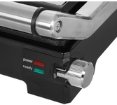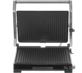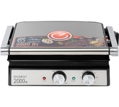 Мощность 2000 Вт Антипригарное покрытие Размер пластин 34*23,5 см Максимальная температура 230° Регулировать расстояния между пластинами по высоте продукта Корпус из высокопрочного пластика, декорирован нержавеющей сталью Открытие крышки 105-180 ° Регулировка температуры Поддон для сбора жира Индикатор готовности и питания Электропитание 220-240 В, 50 Гц