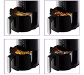 Аэрогриль, электронное управление, цветной светодиодный дисплей, мощность: 2000 Вт, внутренний объем: 7 Л, антипригарное покрытие , смотровое окно , внутренняя подсветка, таймер, регулируемая температура: 60-220 градусов, ручная настройка режимов приготовления, 8 предустановленных программ приготовления