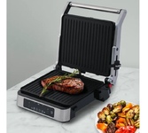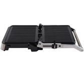Мощность 2000 Вт Съёмные моющиеся пластины с антипригарным покрытием Размер пластин 29*26 см Подстройка расстояния между пластинами по высоте продукта Корпус из высокопрочного пластика, декорированный нержавеющей сталью Вертикальное хранение для компактного размещения на кухне Механический регулятор температуры Нагревательные элементы в верхней и нижней части гриля Открытие крышки на 105 - 180° Поддон для сбора жира Индикатор питания Электропитание: 220-240 Вт, 50-60 Гц