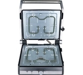 мощностью 2000 Вт, сенсорное управление, гриль-пресс, режим "барбекю" (180 градусов), 9 уровней мощности, съемные панели, размер панелей 29х24 см, контейнер для сбора жира
