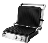 мощностью 2000 Вт, сенсорное управление, гриль-пресс, режим "барбекю" (180 градусов), съемные панели, размер панелей 29х24 см, контейнер для сбора жира