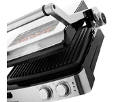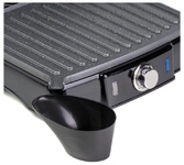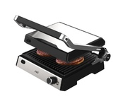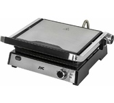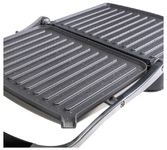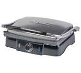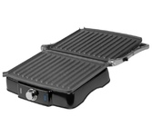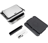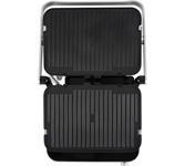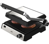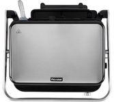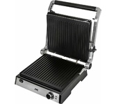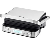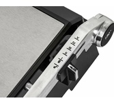 Гриль электрический, мощность 2000 Вт, корпус из матовой нержавеющей стали, плавающая крышка для регулировки толщины с 5 различными настройками высоты, съемные антипригарные панели, встроенный поддон для жира, регулятор температуры с индикатором, скребок в комплекте, панели можно мыть в посудомоечной машине