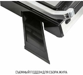 Параметры питания, В/Гц: 220-240/50, Мощность, Вт: 2200, Материал корпуса: нержавеющая сталь, Индикатор нагрева, Индикатор сети, Габаритные размеры, см: 35х17х34, Внутреннее покрытие: мраморное керамическое, В комплекте: лопатка, емкости для сбора жидкости - 2 шт.