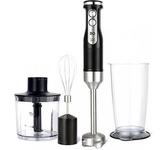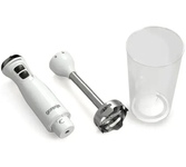 Погружной блендер, мощность 750W, современный эргономичный дизайн, пульсовый режим работы, 2 скорости, режим "Турбо", лезвия из нержавеющей стали, металлическая нога блендера, венчик для взбивания, чаша с ножом для рубки и измельчения, 400 мл; автоматичес
