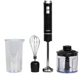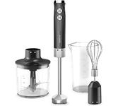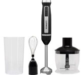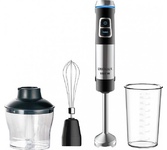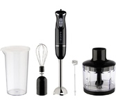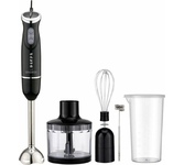 Блендер погружной, максимальная мощность 800 Вт, компактый размер - диаметр корпуса 42 мм, 2 скорости, насадка-блендер из нержавеющей стали, съемная насадка-венчик из нержавеющей стали, мини-измельчитель 500 мл, мерный стакан 700 мл, цвет черный с серым