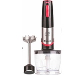 800 Вт, мощный и тихий DC мотор, 2 скорости работы, лезвия из нерж.стали, погруж.часть блендера из нерж.стали, насадка-венчик из стали, градуированный стакан (0,7 л), чоппер (0,5 л) с острыми ножами из нерж.стали