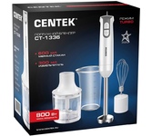 Блендер Centek CT-1336 (белый/серый) 800Вт DC мотор, стальная насадка, стакан 600мл, чоппер, венчик